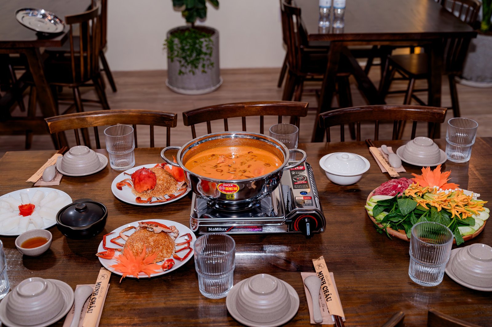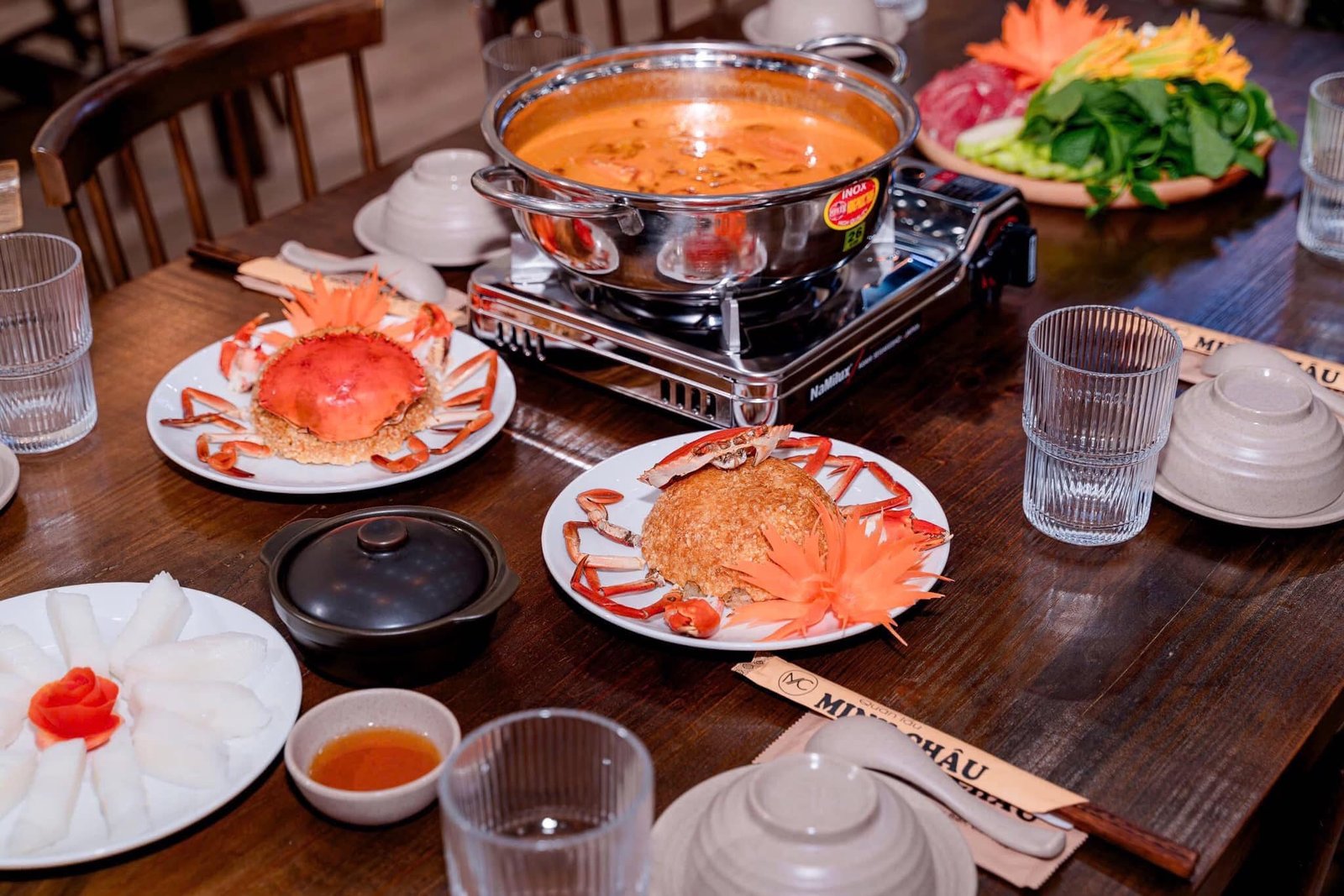 Chào mừng đến với Lẩu Minh Châu, nơi bạn có thể thưởng thức món lẩu cua truyền thống, xôi thơm ngon và nhiều món ăn hấp dẫn trong bầu không khí ấm cúng.